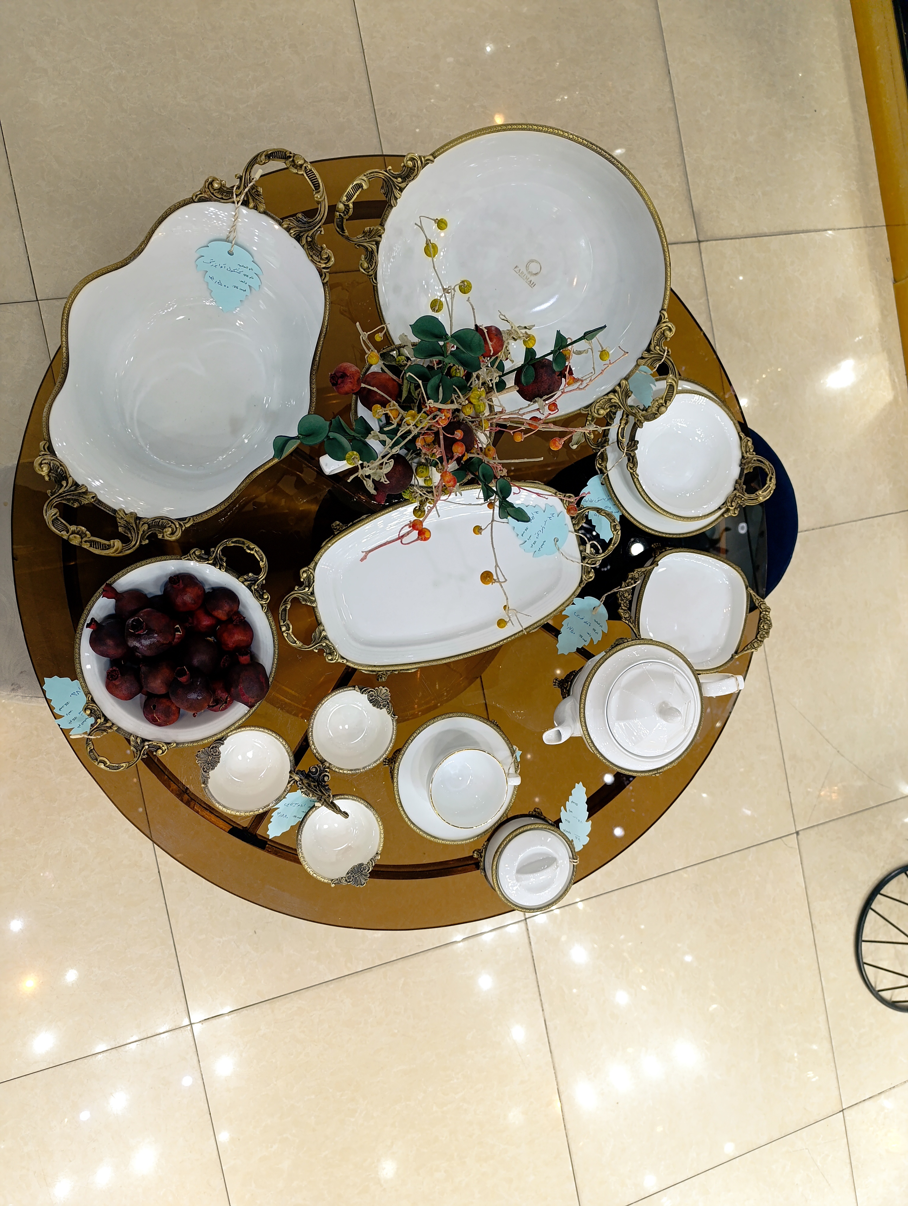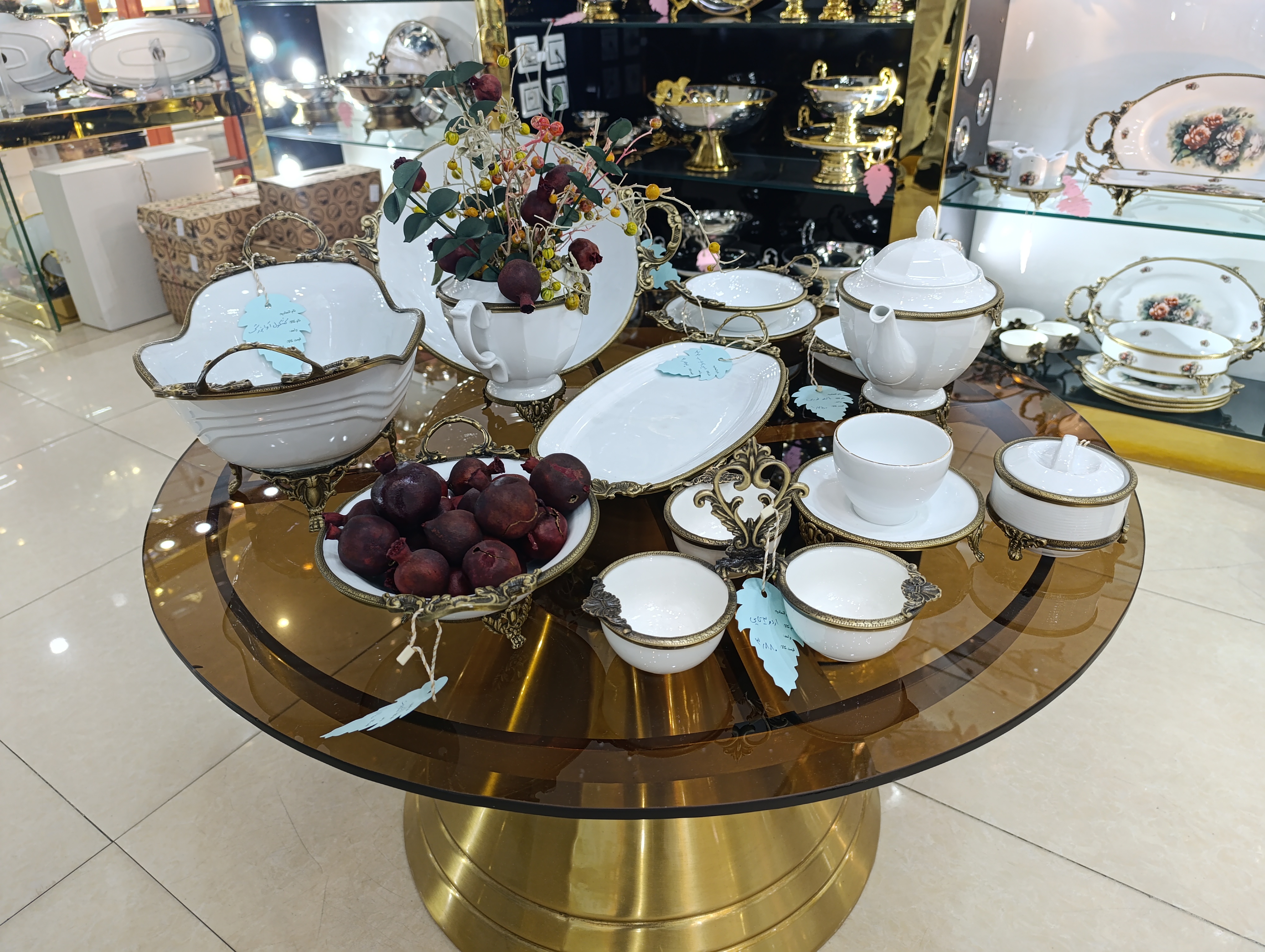 دستهبندی: چینیبرچسبها : سرویس پذیراییچینیجنس: چینیفریم: برنجسرویس شامل: میوه خوری کشکول آجیل پیاله پیش دستی شیرین خوری شکلات خوری فنجان نعلبکی قوری اردو خوری باقلوا خوری قندان
